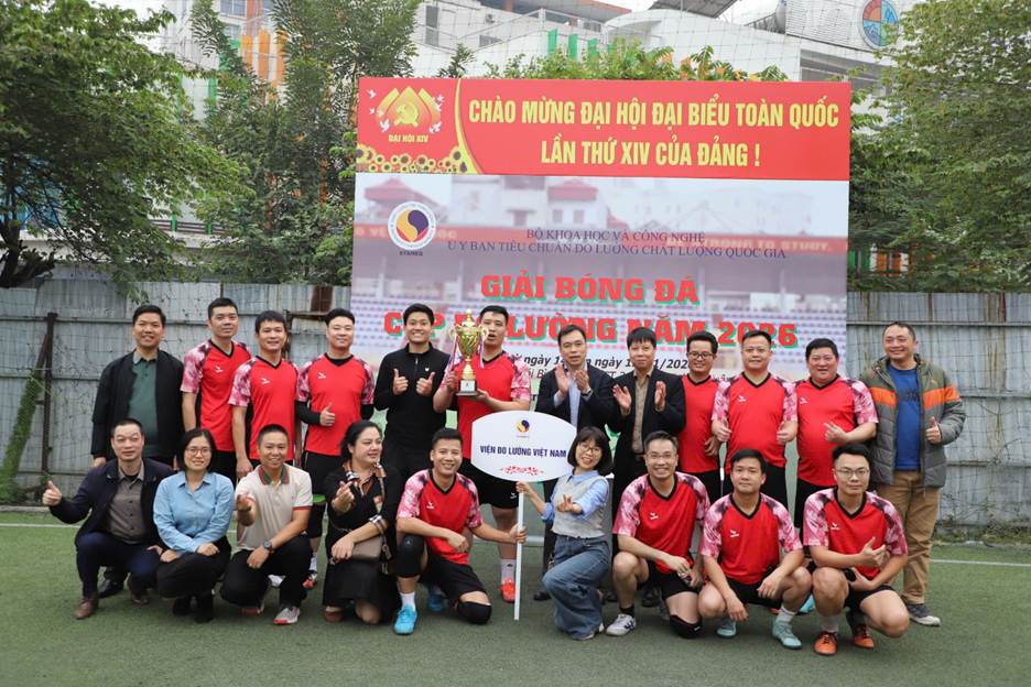 Tham gia giải bóng đá Cup Đo lường năm 2026 là các cầu thủ không chuyên nhưng giàu nhiệt huyết đã mang đến cho khán giả các trận đấu sôi nổi, hấp dẫn với nhiều pha bóng đẹp. Đặc biệt với tinh thần thi đấu đoàn kết, quyết tâm và nỗ lực không ngừng, đội bóng Viện Đo lường Việt Nam đã xuất sắc vượt qua các đối thủ, giành giải nhất Cup Đo lường năm 2026. Thành tích này không chỉ khẳng định phong trào rèn luyện thể dục thể thao ngày càng phát triển mạnh mẽ tại Viện Đo lường Việt Nam mà còn góp phần tạo nên không khí thi đua sôi nổi, ý nghĩa chào mừng Ngày Đo lường Việt Nam.