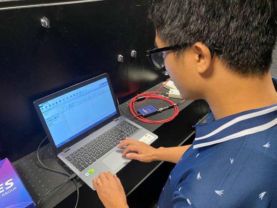 Cán bộ Viện Đo lường Việt Nam đang thực hiện quy trình hiệu chuẩn độ chính xác bước sóng cho thiết bị quang phổ kế bức xạ (spectroradiometer).